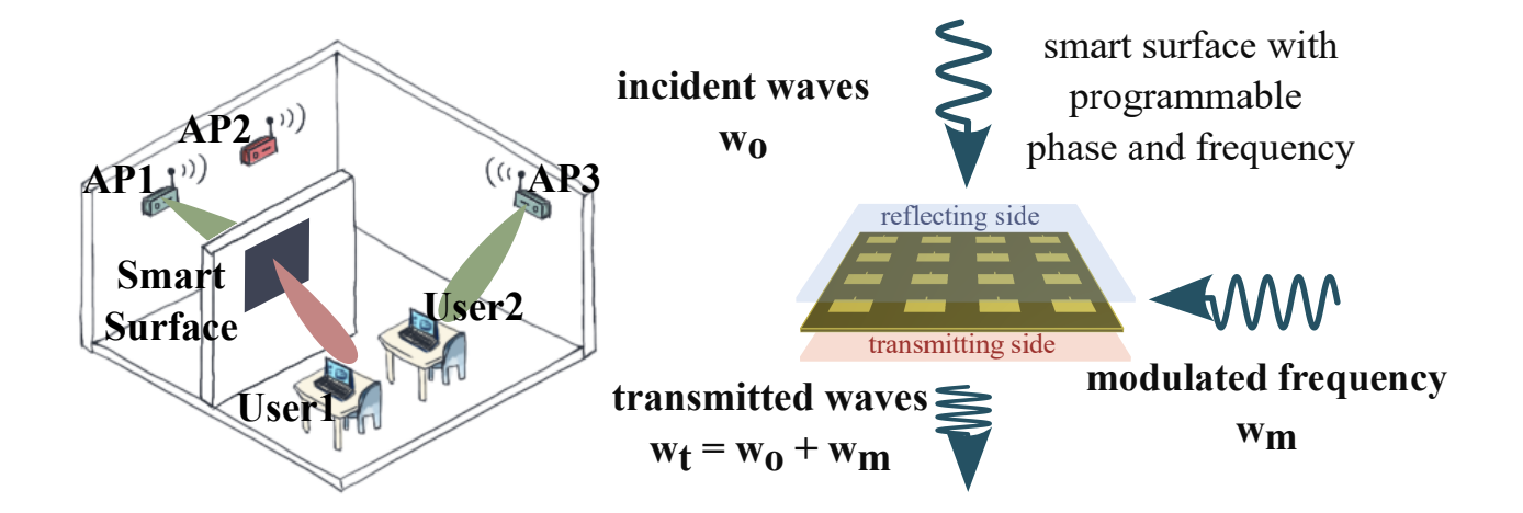 This paper proposes a new capability for RF metasurfaces: highly programmable frequency conversion. We design RFBridge, a low-power metasurface that can simply convert RF signals on one frequency to another, with both of these frequency bands being highly configurable over a wide range -- from 2 GHz to 8 GHz. We design this system as a means to open up varied applications for both wireless communication and sensing. Consider, for example, an RFBridge surface that acts as a frequency-converting relay from a 5 GHz Wi-Fi radio to a legacy 2.4 GHz Wi-Fi radio. Or consider multiple RFBridge surfaces that can collaboratively convert RF signals from a base station to various frequency bands in different rooms to minimize interference. We present a detailed design of RFBridge's frequency tunability and beamforming meta-cells, provide promising results through HFSS simulations, and discuss the exciting new applications opened up by frequency converting metamaterial surfaces.